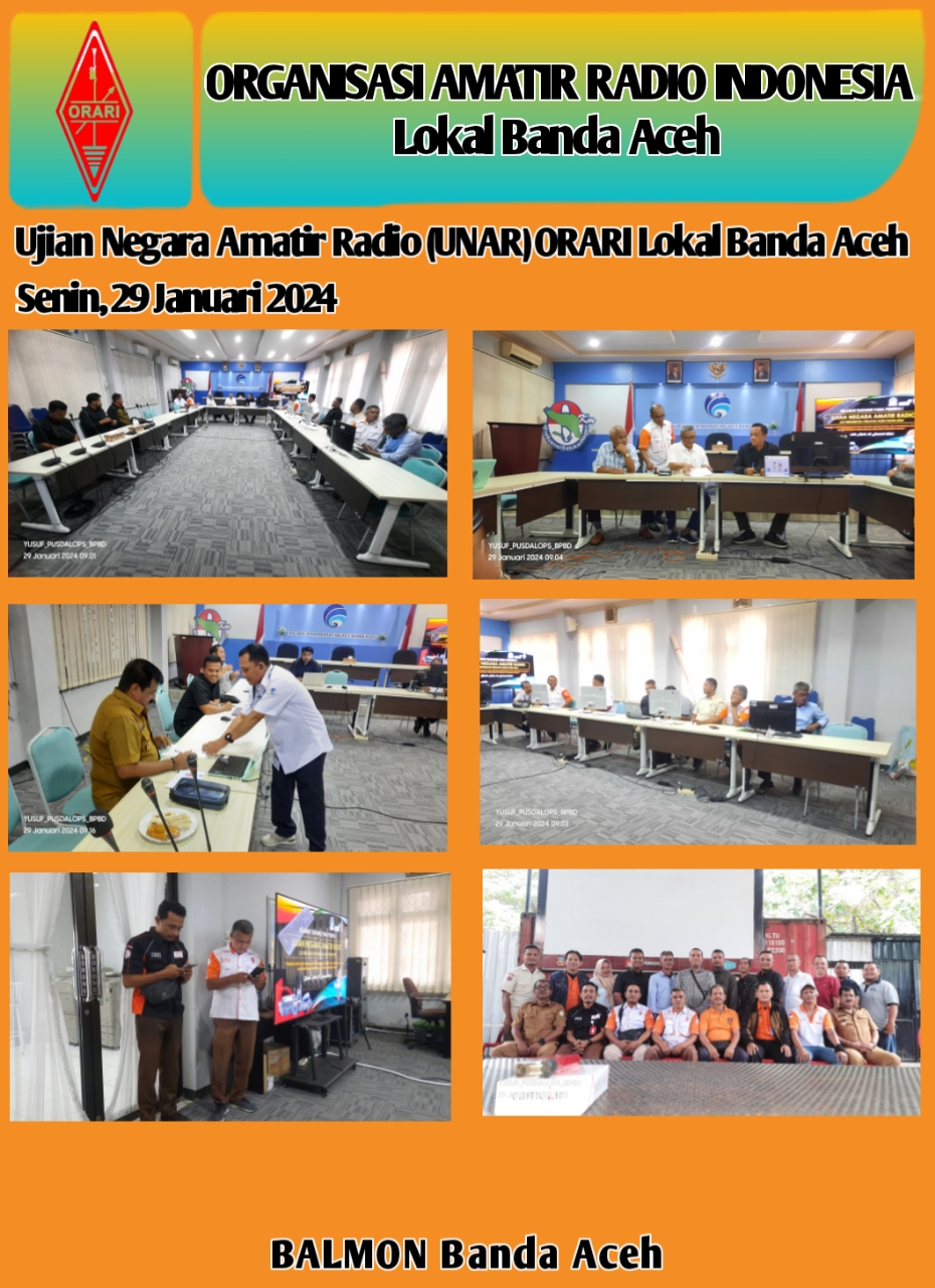 Ujian Amatir yang diselenggarakan oleh Balmon Banda Aceh pengurus ORARI Lokal Banda Aceh langsung mendampingi kegiatan tersebut. Turut hadir Ketua Lokal Banda Aceh Julizar/YC6BKO, Wakil Ketua satu Didit Mohd.Nur/YD6BIP, Sektaris Supriadi/YC6BSR, Wakil Sektaris Novendra/YD6AEV, Humas Lokal Mohd.Yusuf/YD6AKO dan Pengurus lainnya.