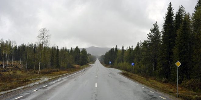 Typical landscape of Northern Sweden – a long and empty road through woods.