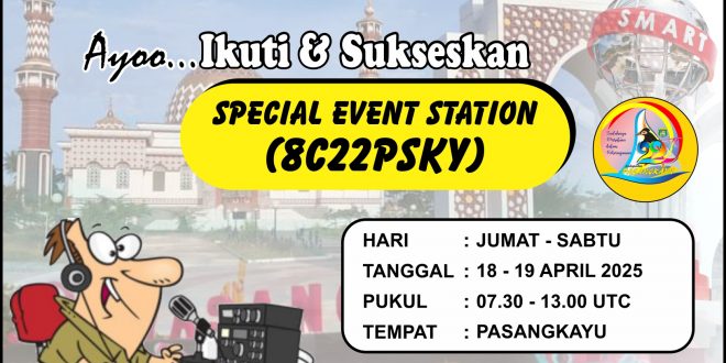 Dalam rangka memeriahkan Hari Jadi Kabupaten Pasangkayu yang ke 22, ORARI Lokal Pasangkayu Sulawesi Barat akan melaksanakan Special Event Station dengan tanda panggilan 8C22PSKY.