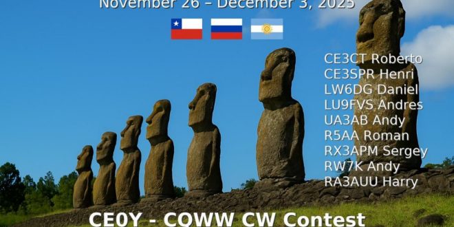 They will operate on HF Bands, including activity in CQ WW DX CW Contest, 29 – 30 November 2025 as CE0Y in Multi Multi Category.